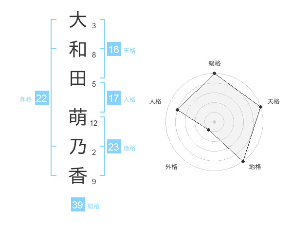 大和田 萌乃香さんを姓名の画数から五運を鑑定