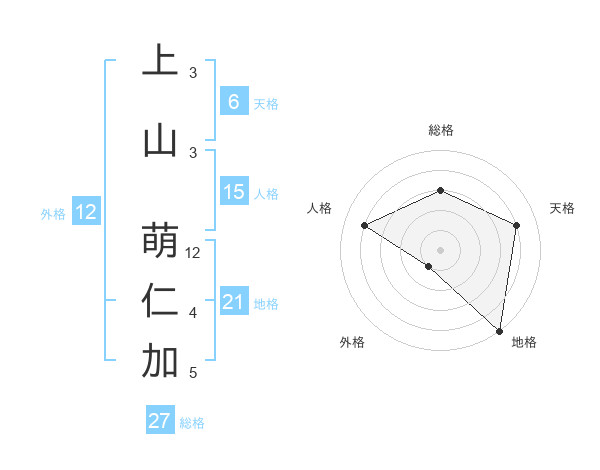 上山 萌仁加さんを姓名の画数から五運を鑑定