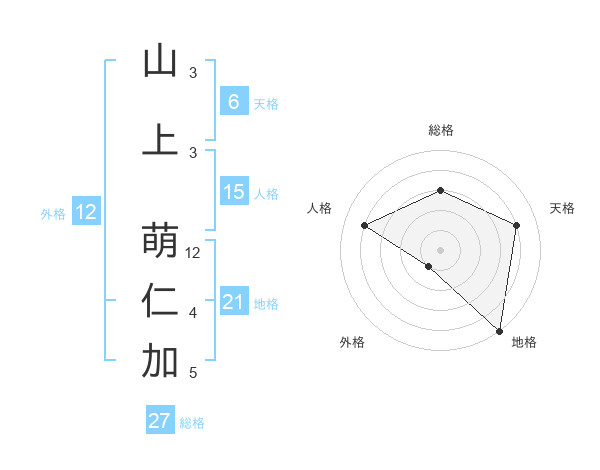 山上 萌仁加さんを姓名の画数から五運を鑑定