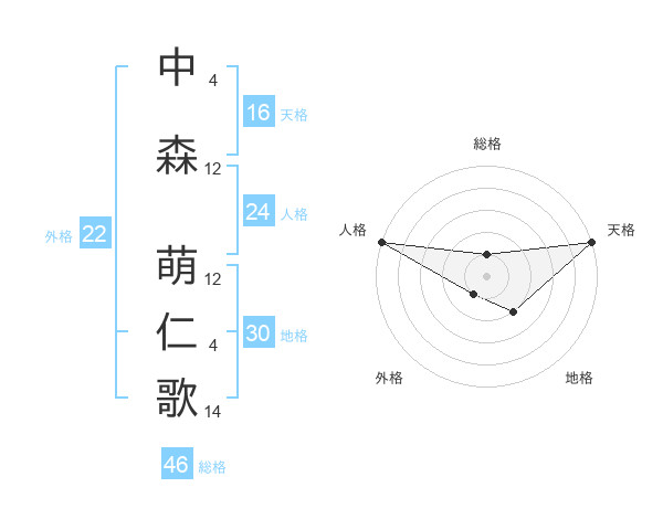 中森 萌仁歌さんを姓名の画数から五運を鑑定