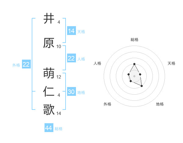 井原 萌仁歌さんの総格は44画の2点!