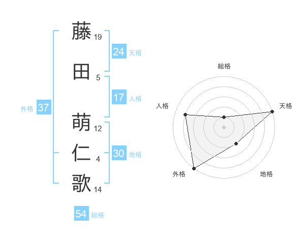藤田 萌仁歌さんの外格は37画の5点!