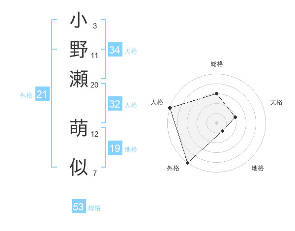 小野瀬 萌似さんを姓名の画数から五運を鑑定