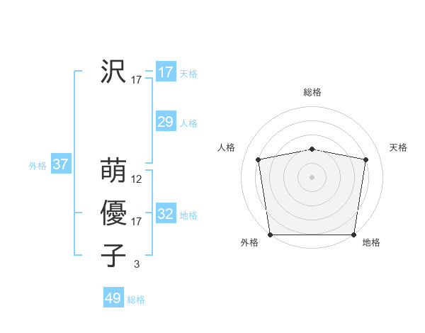沢 萌優子さんを姓名の画数から五運を鑑定