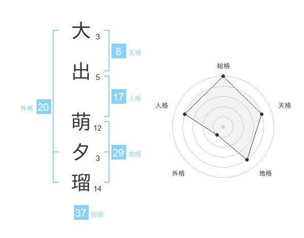 大出 萌夕瑠さんを姓名の画数から五運を鑑定