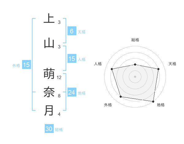 上山 萌奈月さんを姓名の画数から五運を鑑定