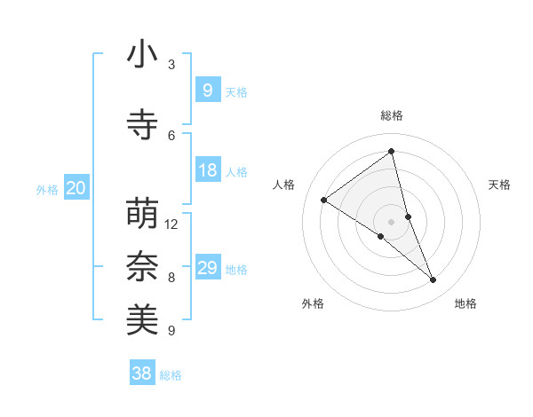 小寺 萌奈美さんの総格は38画の4点!