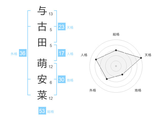 与古田 萌安菜さんを姓名の画数から五運を鑑定