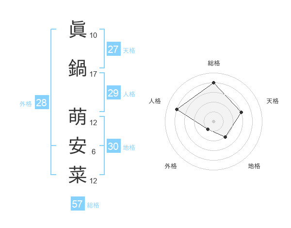 眞鍋 萌安菜さんを姓名の画数から五運を鑑定