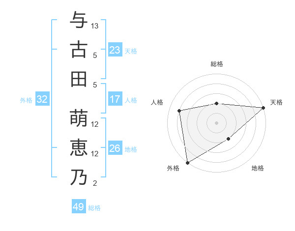 与古田 萌恵乃さんの天格は23画の5点!
