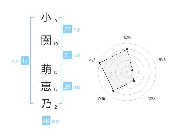 小関 萌恵乃さんを姓名の画数から五運を鑑定