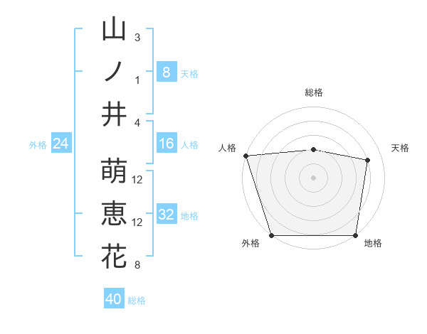 山ノ井 萌恵花さんを姓名の画数から五運を鑑定