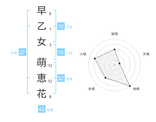 早乙女 萌恵花さんの総格は42画の3点!
