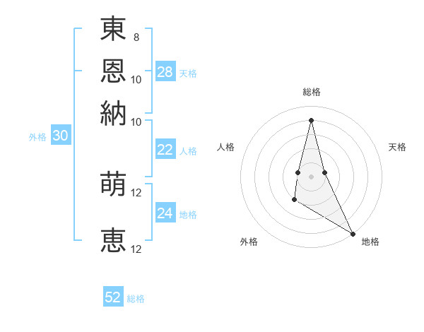 東恩納 萌恵さんを姓名の画数から五運を鑑定