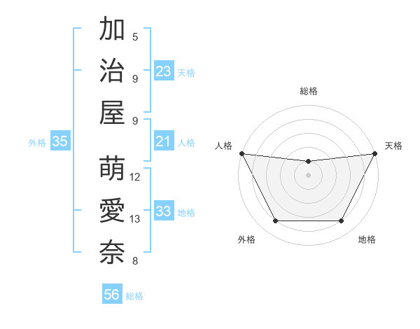 加治屋 萌愛奈さんを姓名の画数から五運を鑑定
