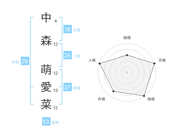 中森 萌愛菜さんを姓名の画数から五運を鑑定