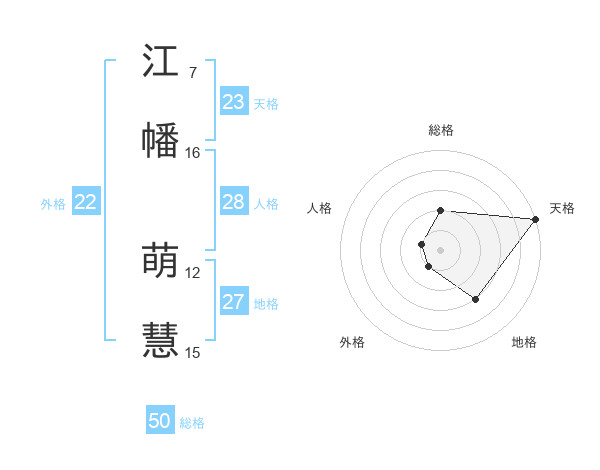 江幡 萌慧さんの天格は23画の5点!