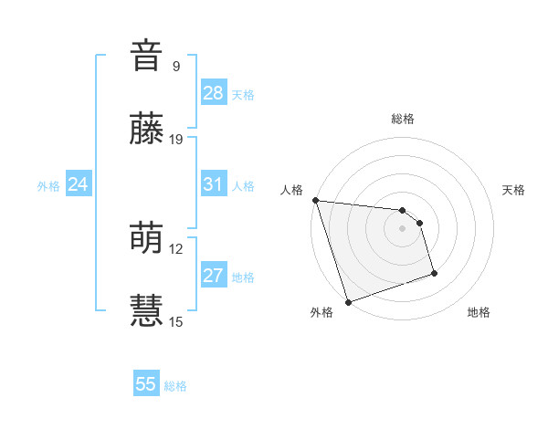 音藤 萌慧さんを姓名の画数から五運を鑑定