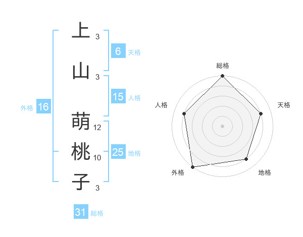 上山 萌桃子さんの総格は31画の5点