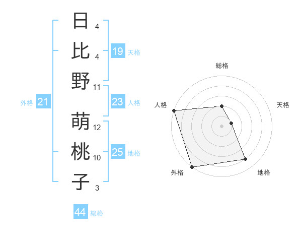 日比野 萌桃子さんを姓名の画数から五運を鑑定