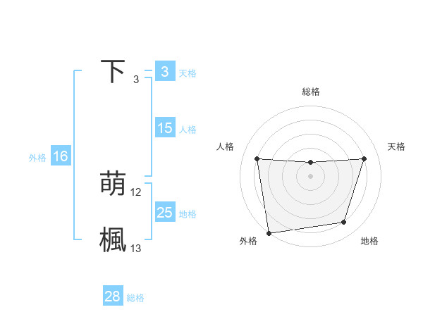 下 萌楓さんの総格は28画の1点!