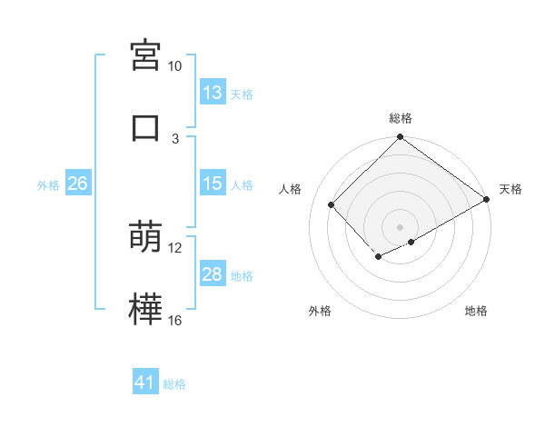 宮口 萌樺さんの総格は41画の5点!