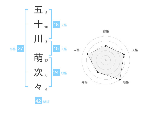 五十川 萌次々さんを姓名の画数から五運を鑑定