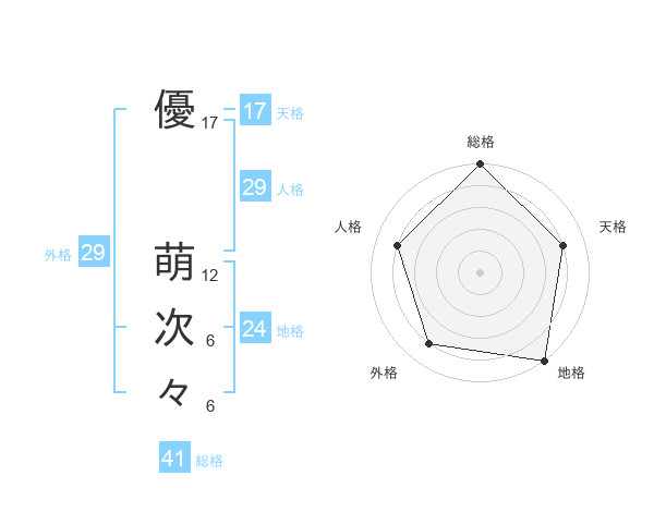 優 萌次々さんの総格は41画の5点!
