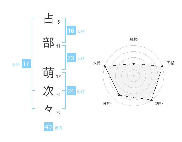 占部 萌次々さんを姓名の画数から五運を鑑定