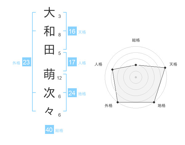 大和田 萌次々さんを姓名の画数から五運を鑑定