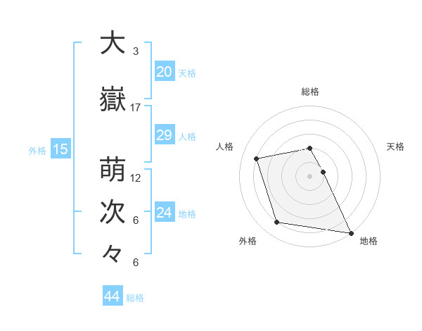 大嶽 萌次々さんの外格は15画の4点!