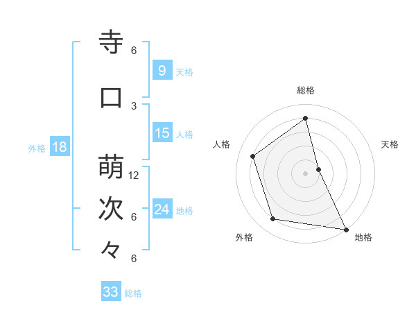 寺口 萌次々さんの総格は33画の4点!
