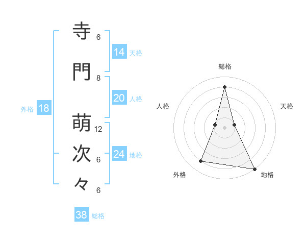 寺門 萌次々さんの総格は38画の4点!