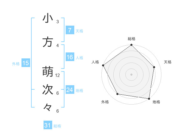 小方 萌次々さんの総格は31画の5点!
