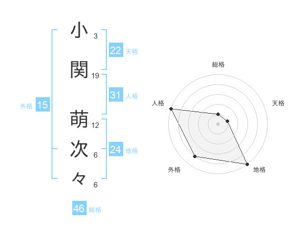 小関 萌次々さんを姓名の画数から五運を鑑定