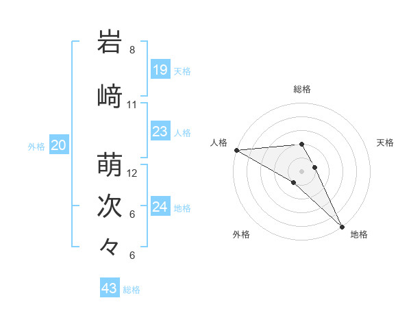 岩﨑 萌次々さんを姓名の画数から五運を鑑定
