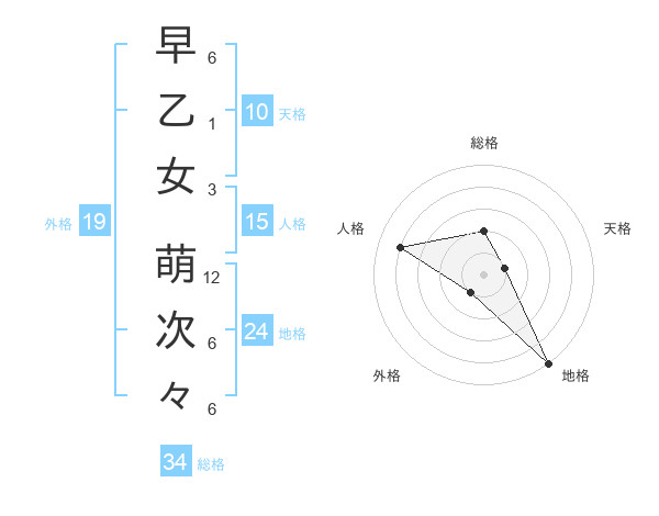 早乙女 萌次々さんを姓名の画数から五運を鑑定
