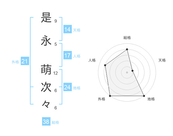 是永 萌次々さんを姓名の画数から五運を鑑定