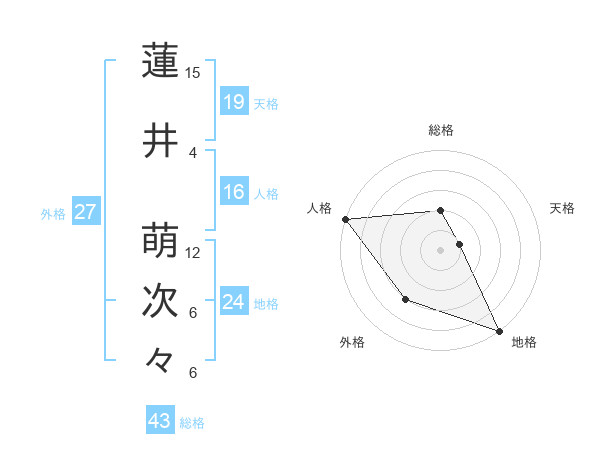 蓮井 萌次々さんの地格は24画の5点!