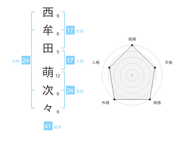 西牟田 萌次々さんを姓名の画数から五運を鑑定