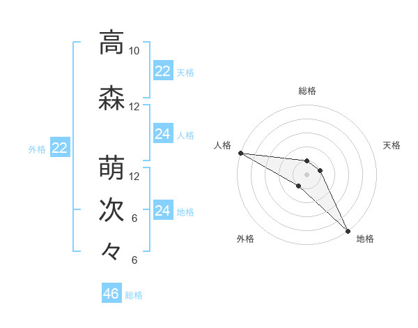 高森 萌次々さんを姓名の画数から五運を鑑定