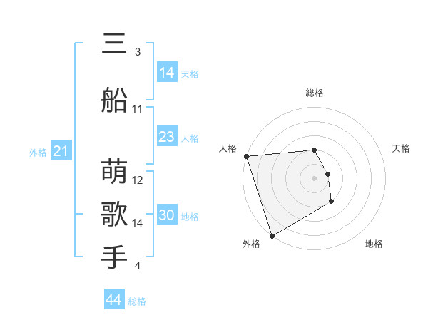 三船 萌歌手さんの総格は44画の2点!