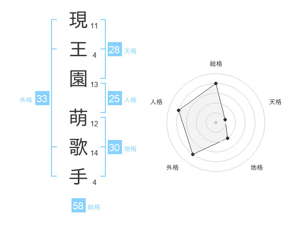 現王園 萌歌手さんの総格は58画の4点!