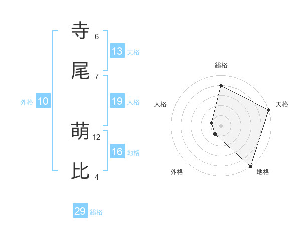 寺尾 萌比さんの天格は13画の5点!