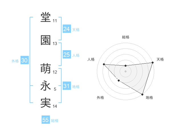 堂園 萌永実さんを姓名の画数から五運を鑑定