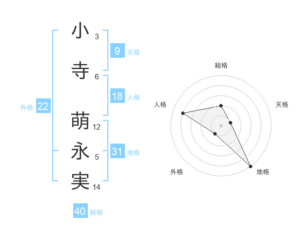 小寺 萌永実さんの外格は22画の1点!