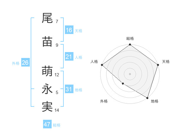 尾苗 萌永実さんを姓名の画数から五運を鑑定