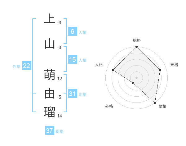 上山 萌由瑠さんの総格は37画の5点!