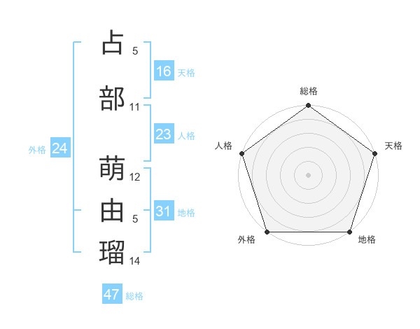 占部 萌由瑠さんの天格は16画の5点!