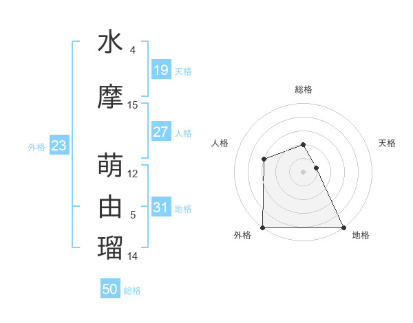水摩 萌由瑠さんの地格は31画の5点!